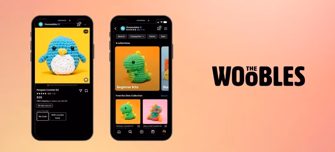 The Woobles saw improved big jumps in campaign performance for their stuffed animal learn-to-crochet kits after adding Meta Checkout-enabled Shops to their strategy vs offsite only.