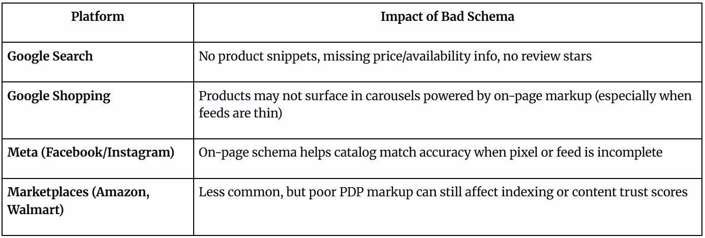 But structured data issues often slip through unnoticed. Unlike policy violations or feed rejections, broken schema just removes you from eligibility. You don’t get penalized — you just disappear.