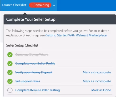 b. The next step on your Launch Checklist is to complete your Seller Profile, which provides a representation of your company to potential customers shopping on Walmart. This includes the following information: