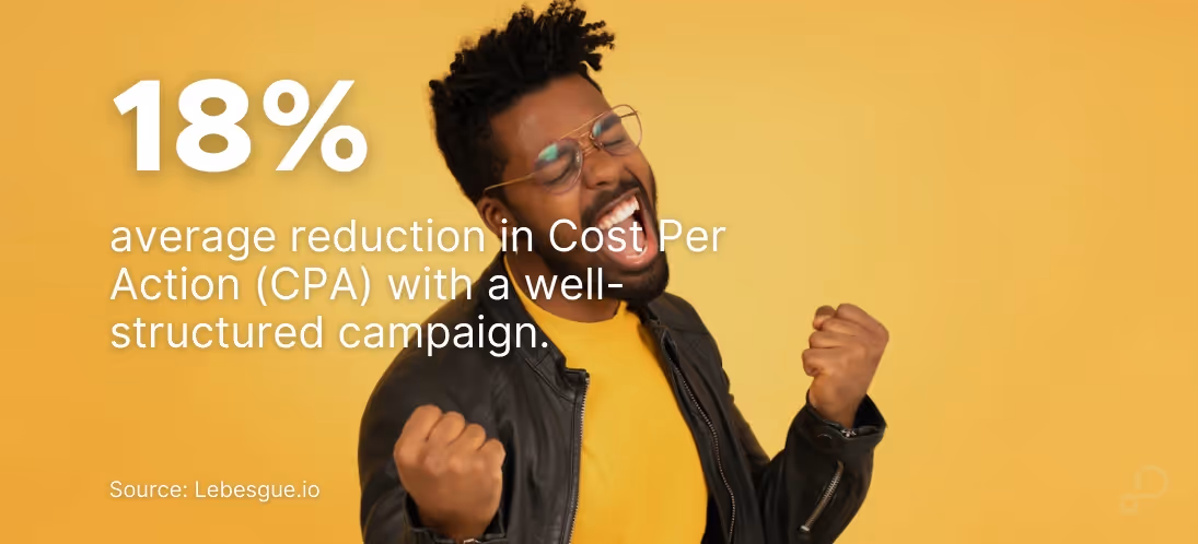 Studies show that a well-structured campaign can reduce Cost Per Action (CPA) by an average of 18%. (Lebesgue.io)
