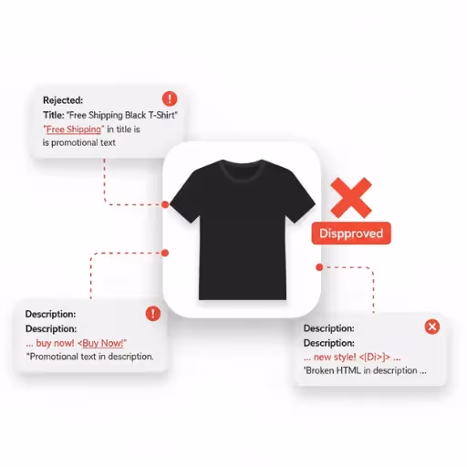 - Channel-specific rule sets: Create separate cleanup logic for Google's strict policies, Meta's character limits, and Amazon's formatting requirements